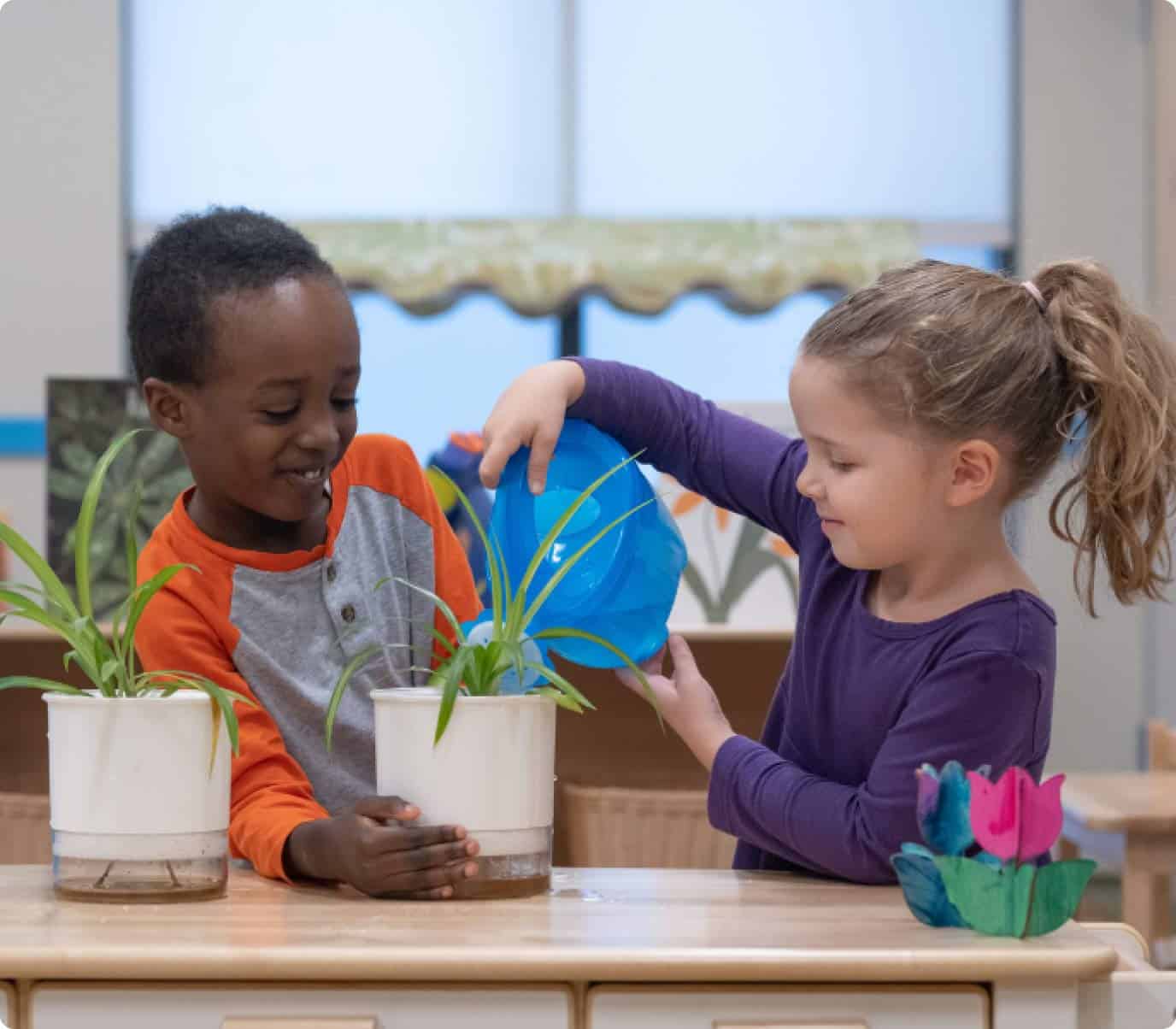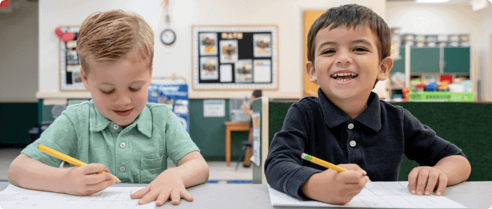 Intermediates 3-4 years Home / Programs / Intermediates (3-4 yrs) Inspiring Curiosity Daily Toddlers Beginners (2-3 yrs) Intermediates (3-4 yrs) Pre-K Kindergarten Mandarin Program Curious Minds at Work Three-year-olds enjoy a classroom full of activities that spark their imagination and curiosity. They have so much fun that they do not even realize that they are learning new skills! Social interactions are a big part of our program. Your child will practice taking turns, sharing, and understanding their own emotions, as well as those of their friends. These skills help to build strong friendships and good communication in our students. We are also proud to teach our students to appreciate diversity. We invite them to celebrate and accept people who may be similar or different from themselves. This helps to build a positive and inclusive view of the world. Schedule a Tour Students Will Enjoy: Storytime to build vocabulary and understanding. Math lessons on using graphs and number lines. Art projects to inspire imagination. Science experiments to make predictions, test ideas, and explore how things work. Links to Learning in our Intermediate Classroom: Language & Literacy Our teachers ask our students to share their ideas and listen to each other. Through this, our students gain more confidence in speaking in front of others. They work with letter sounds and explore characters and plot lines in books. Mathematical Thinking Our students sort, compare, and use simple graphs and number lines. These math skills make numbers fun and relatable! They give our students a strong foundation in math. Social-Emotional Learning Our students learn to follow directions, take turns, and make friends. Play helps them understand their feelings and learn to speak with friends. They build the strong social and emotional skills that they will need for kindergarten and beyond. Wellness Our students develop their fine motor skills by working with their hands. They improve their balance through movement activities. Stretching, running, and dancing help them feel strong and confident. Creative Expression Through art and music, our students explore textures, colors, and sounds. We teach them about artists and musicians and inspire them to express themselves in new ways. Scientific Exploration In science, our students learn by observing, predicting, and exploring changes. They see cause and effect in action! These activities spark their curiosity and get them excited for learning. Citizens of the World We introduce our students to the idea of diversity. They grow to accept and appreciate others who may look, speak, or live differently. They also start to understand that each family is unique. They learn that these are some things that make our world more interesting.